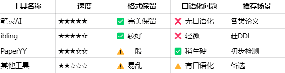 还有一个细节我很在意:很多工具降完后会口语化或者字数猛涨,而笔灵AI不会变口语化、字数也几乎没变化。 这点真的太关键,特别是论文有字数要求时。