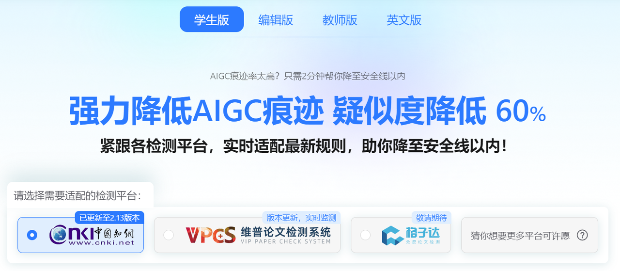 它能够帮助留学生降AI,并且支持多语言文本的降重。