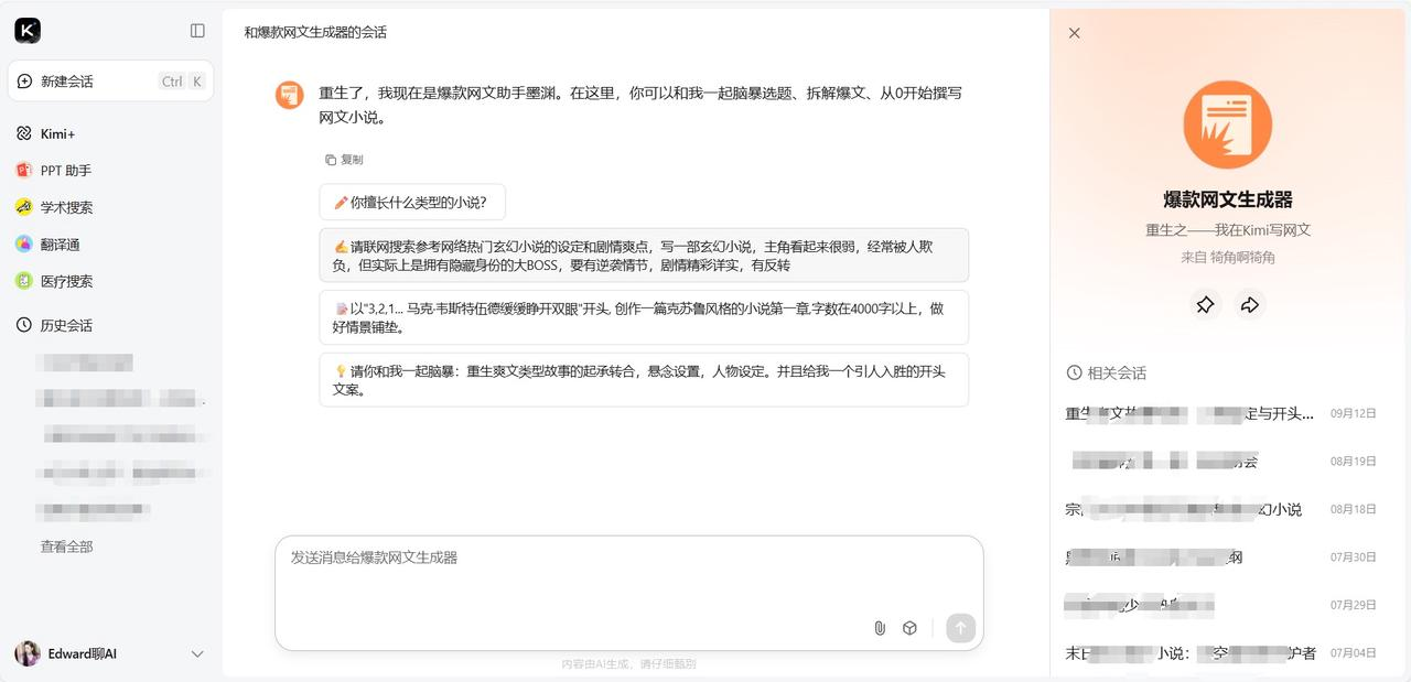 它非常适合做小红书、抖音文案或者Lofter同人文的创作者,能帮你迅速产出爆梗。虽然它的长篇逻辑能力不如Kimi,但在寻找小说的素材和快速开头这方面,它的效率是无敌的。