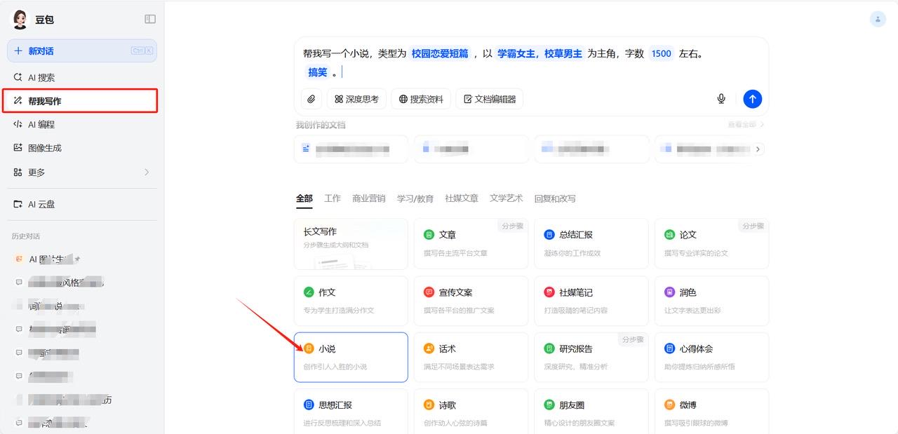 最后说一个适合短篇和抓取灵感的工具——豆包。