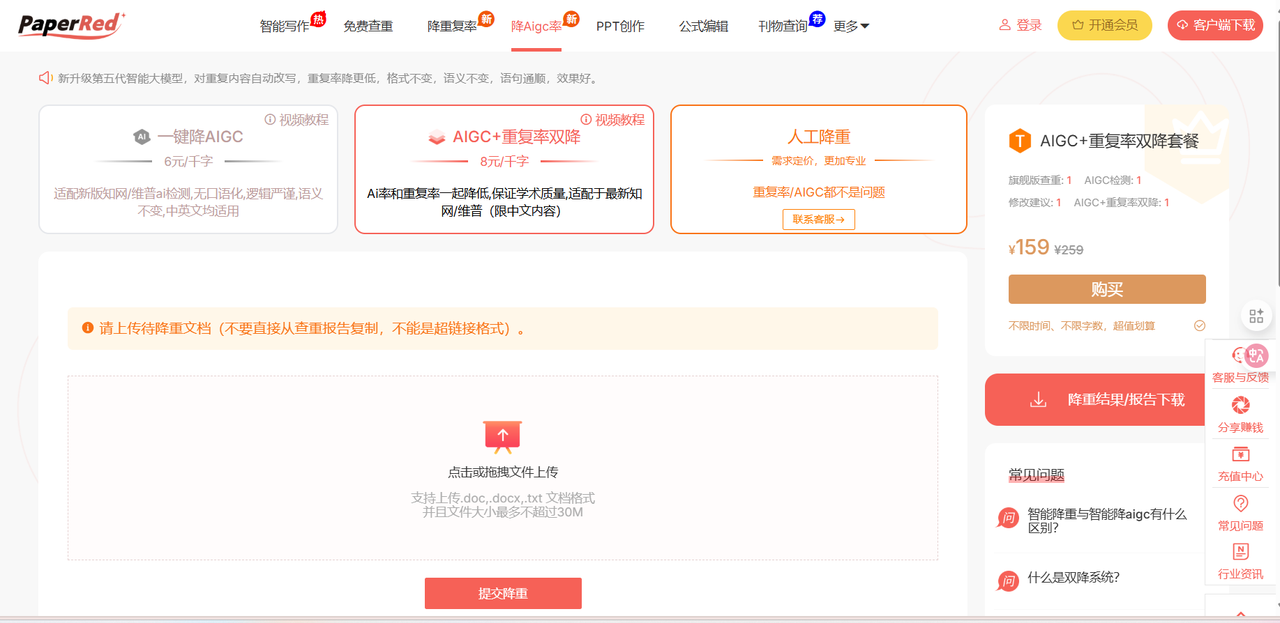 PaperRed是个比较新的工具,我最近才发现的。它主打的是检测加改写一条龙服务。