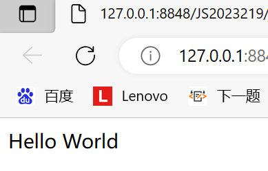 例如我在.js文件里面写入一句"Hello World",并使用外链式在浏览器中显示出来: