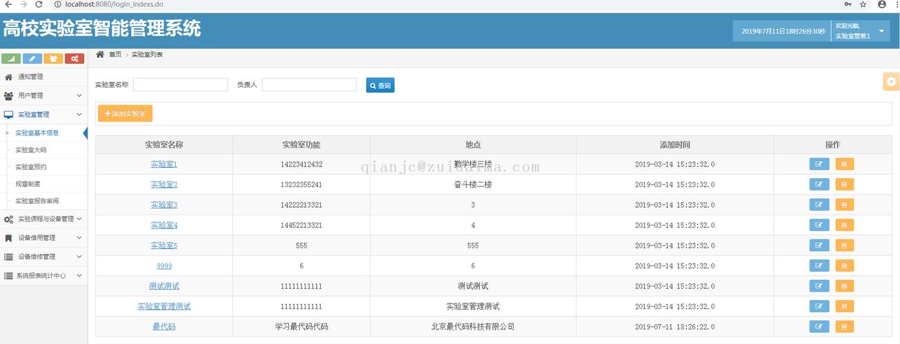 管理人员在登陆之后,可对科区实验室的可想信息进行管理。