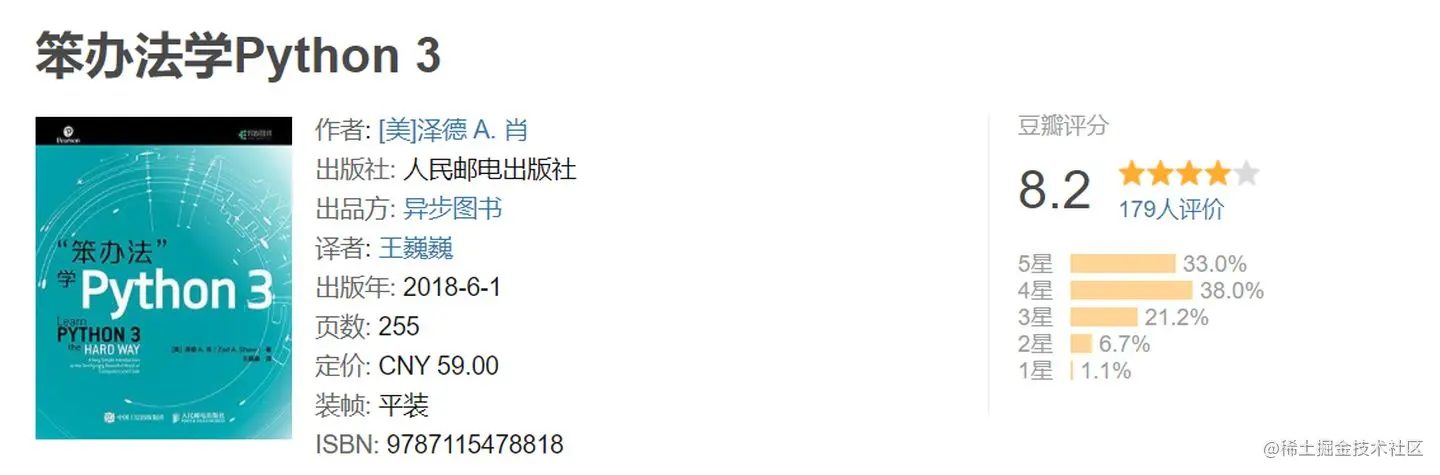 推荐这本书的主要目的,是里面讲解了Python的基本惯用法,可以让你的代码简洁、高效且可读,也就是业内常说的Pythonic,通过这种方式来培养你成为一名熟练的 Python 程序员。