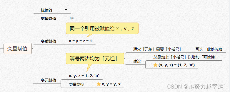 - 在python中,每个变量在使用前都必须赋值,变量赋值以后该变量才会被创建