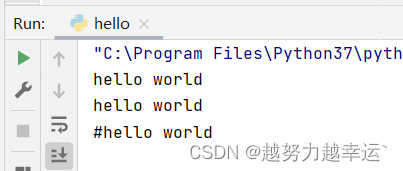 print('''hello world''') print("""hello world""") print("#hello world")运行结果如下: