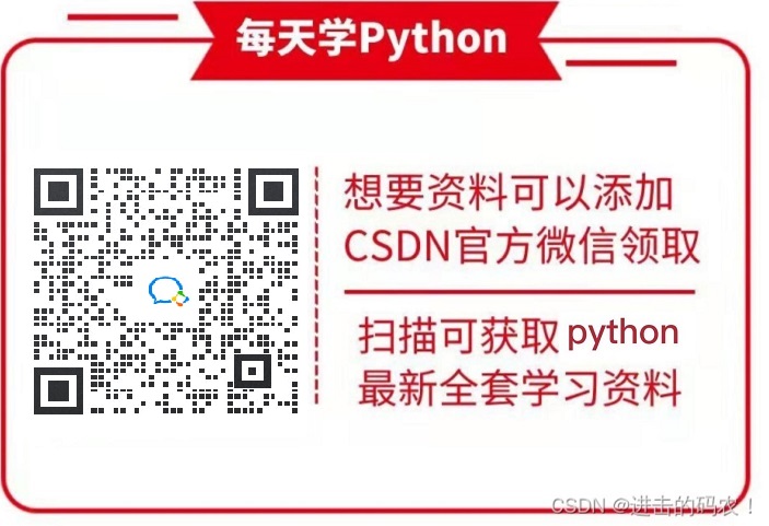 在学习python中有任何困难不懂的可以微信扫描下方优快云官方认证二维码加入python交流学习多多交流问题,互帮互助,这里有不错的学习教程和开发工具。