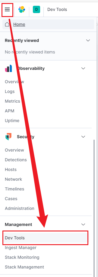 尝试使用Kibana进行查询,按如下方式打开开发工具: