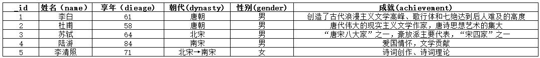 例2:名字里有李或者杜,不能是浪漫主义诗人,且性别是女,享年大于60
