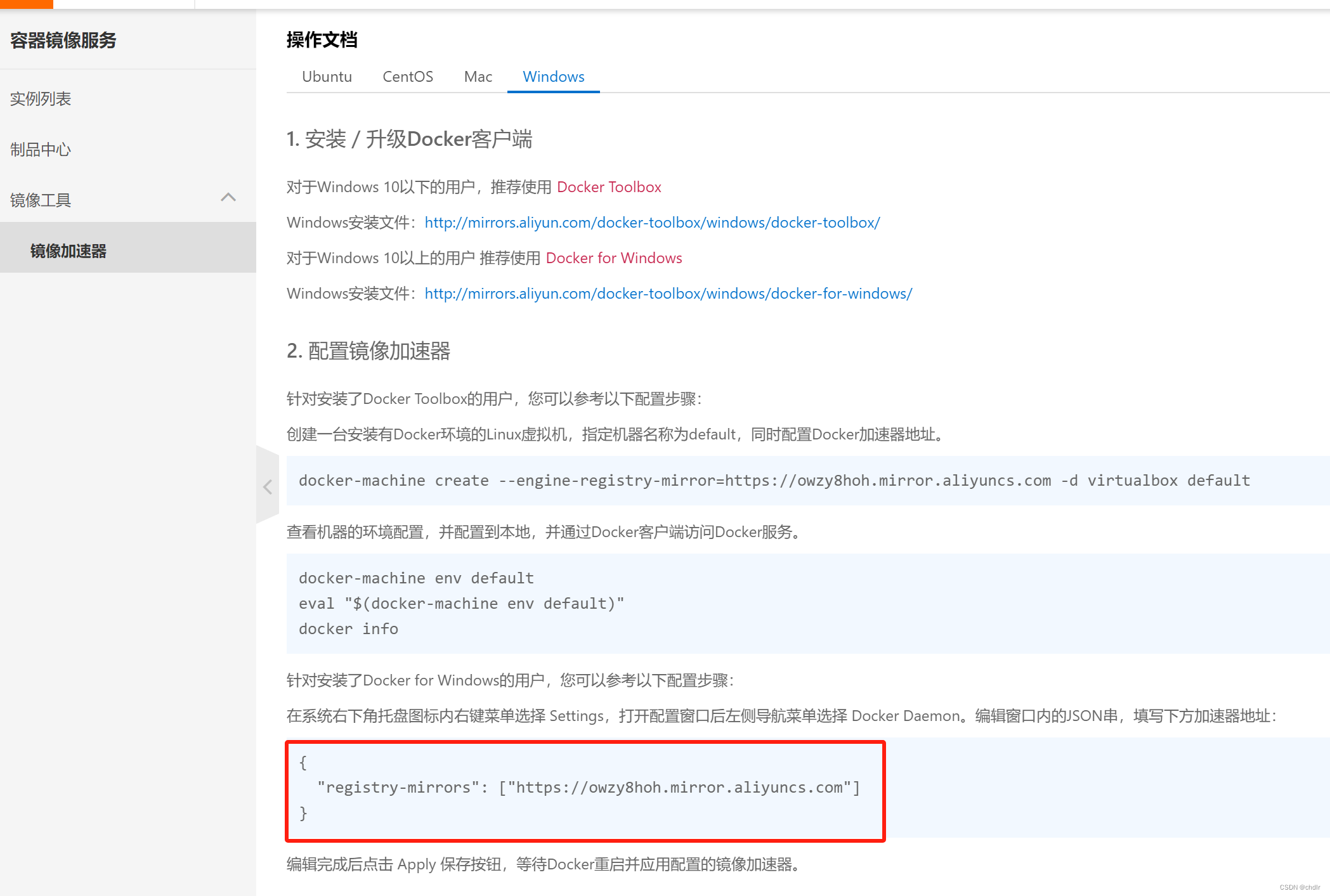 【docker】Windows10系统下安装并配置阿里云镜像加速_docker desktop 配置镜像加速-优快云博客
