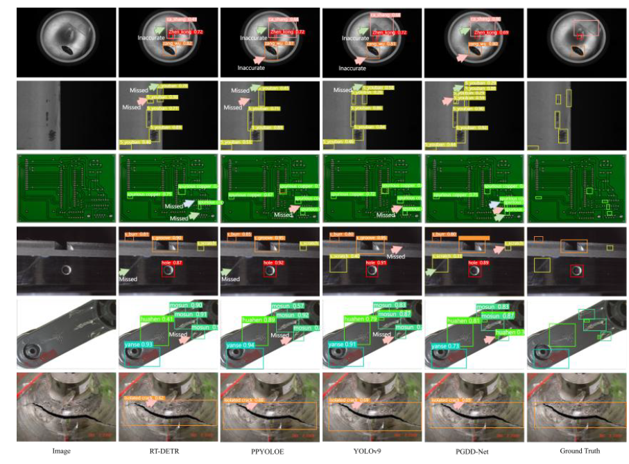 程序架构采用分层递进式设计,前端图像预处理模块包含灰度归一化、直方图均衡化、噪声滤波等步骤,显著提升不同光照条件下的图像质量。核心检测模块加载预训练权重文件,通过ONNX格式转换实现跨平台部署,在工控机端达到35FPS的实时处理速度。后处理阶段设计双重校验机制,先通过非极大值抑制去除冗余候选框,再运用形态学闭运算消除孤立噪点,最终输出带有置信度的缺陷定位结果。