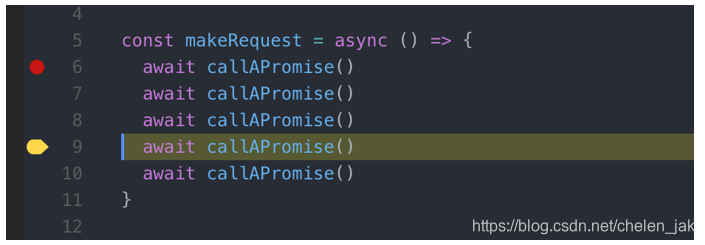 使用await/async时,你不再需要那么多箭头函数,这样你就可以像调试同步代码一样跳过await语句。