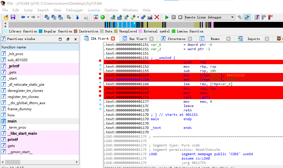 WINDOWS上IDA通过linux_sever64程序对linux程序进行动态调试,详细过程看https://blog.youkuaiyun.com/chelp/article/details/24341425
