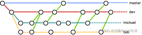 (3)你和你的小伙伴们每个人都在dev分支上干活,每个人都有自己的分支,时不时地往dev分支上合并就可以了。
