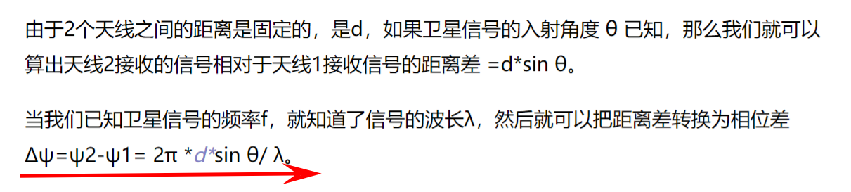 在下面的公式中 △ψ=ψ2−ψ1=2π∗d∗sinθ/λ d:两个天线单元之间的间距;
