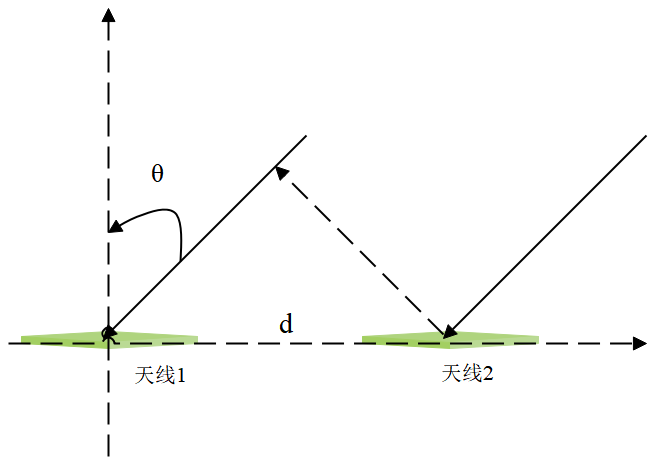 我们先用最简单的模型,2个天线阵列为例,说明如何测量卫星信号的到达角θ。