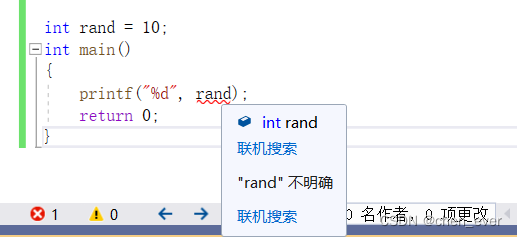 rand在C语言中是一个产生随机值的函数,但是将他定义为具体的值时,将产生冲突,程序无法运行。