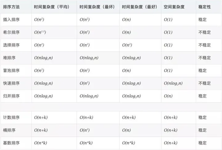 以下常见排序算法的复杂度分析,感受一下时间复杂度和空间复杂度。