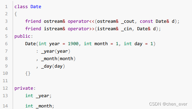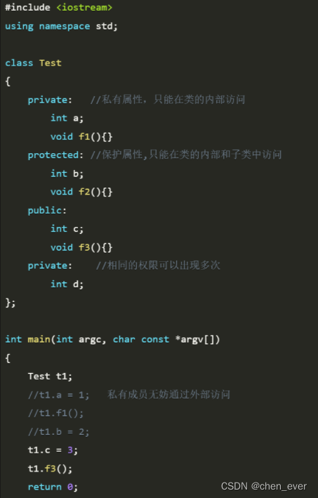 private:内部默认是私有权限,类的外部不能直接访问内部成员;可以手动声明为公有权限