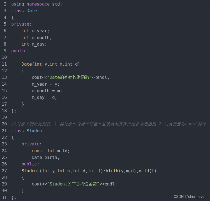 (2)成员变量为const修饰