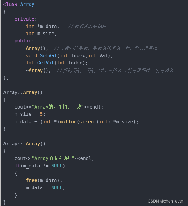 注意:析构函数没有参数,不能被重载,一个类只能有一个析构函数,如果用户没有定义析构函数,编译器会提供默认的析构函数