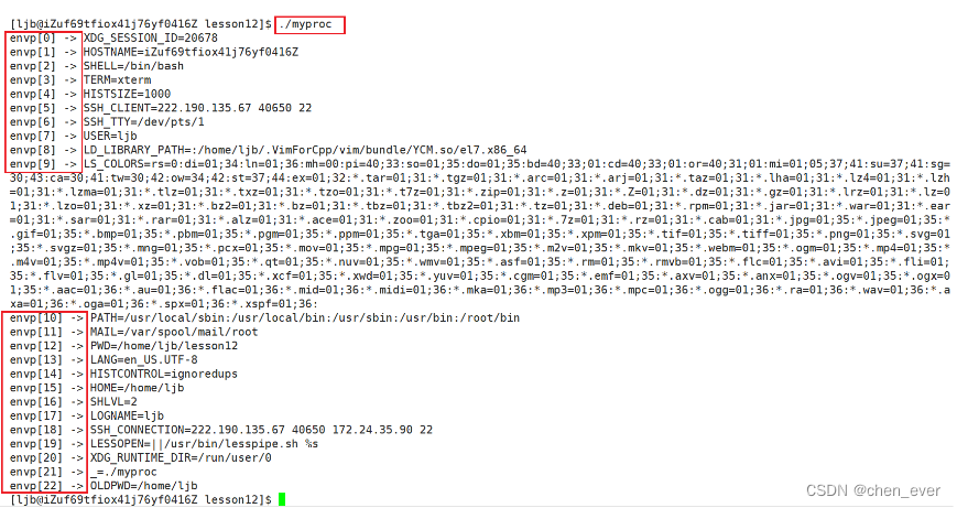 发现 HOME 环境变量是不同的。这说明对于不同的登录用户,同一个环境变量可能存放不同的数据,即环境变量是针对特定的人,在特定的场景中被使用的变量。