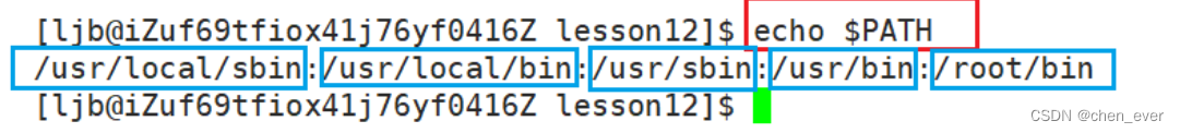 接下来回答第二个问题,为什么同为可执行程序的 ls 、 pwd 等等诸多指令在使用时不需要加 ./ 来说明其所处路径呢?这是因为在系统中存在一个环境变量帮助我们在特定路径下搜索这些默认指令,这个环境变量叫做 PATH 。