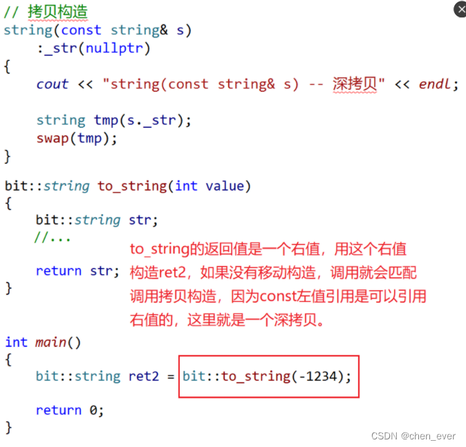 cout << "string(string&& s) -- 移动拷贝" << endl;