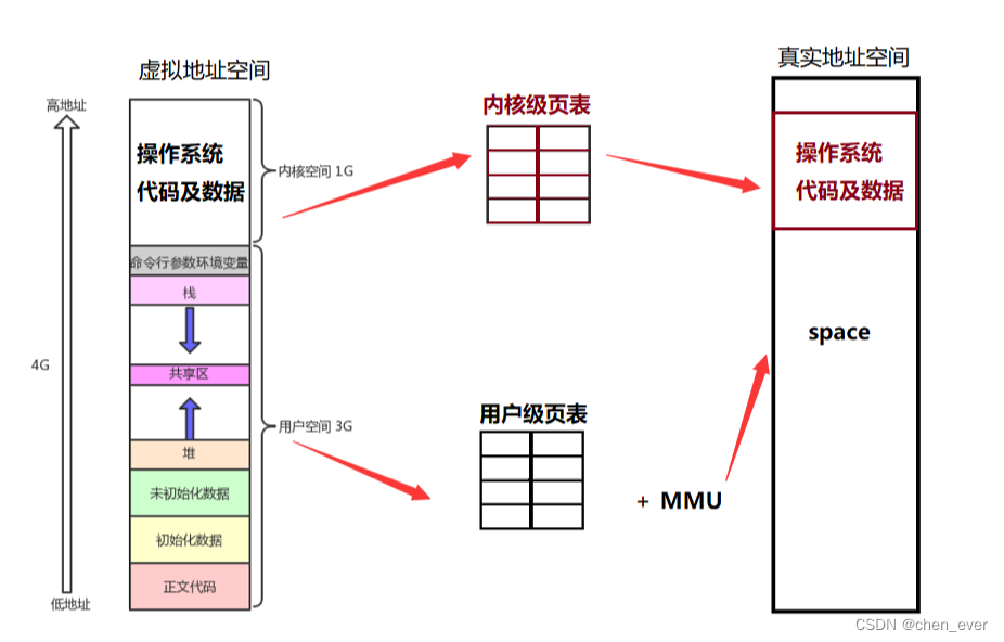 - 而 内核级页表 不同于 用户级页表,专注于对 操作系统代码和数据 进行映射,是很特殊的