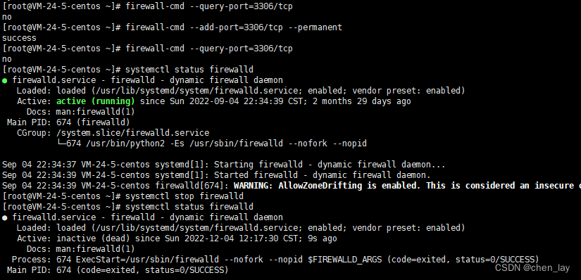 firewall-cmd --query-port=3306/tcp