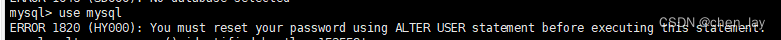 此时,用alter user user() identified by 'Your password';命令修改密码即可。
