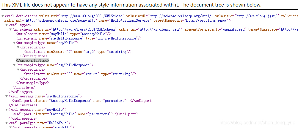 打开游览器输入:http://192.168.43.53:8888/helloword?wsdl可以看到如下,说明服务启动正确