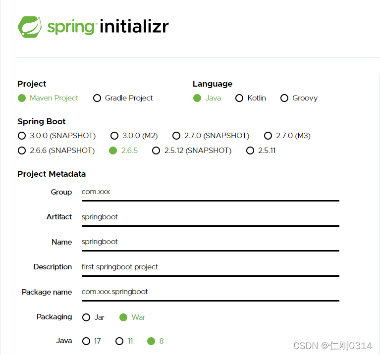 1、打开浏览器,进入到【https://start.spring.io/】。