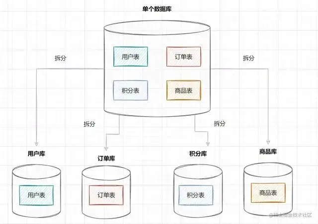 垂直分库:将原本一个库中的表拆分到不同的库中。