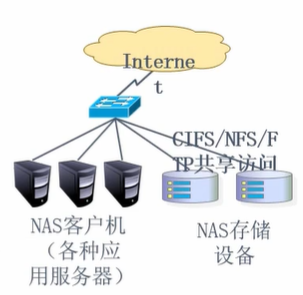 网络附加存储,通过网络在存储主机与使用主机之间传输数据