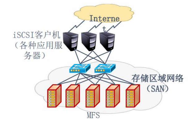 存储区域网络,将生产网络与存储网络进行隔离,有效增加各部效率,减轻网络设备压力,适合大并发业务。
