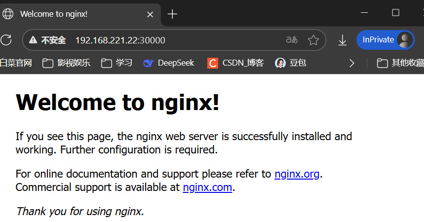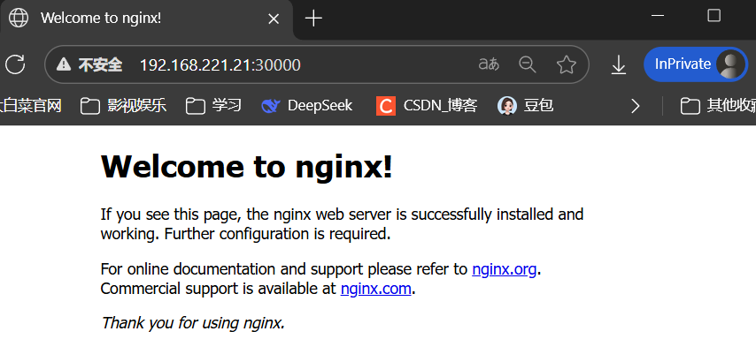 # 访问服务:使用节点 IP 和 NodePort 访问服务。(三个节点都可以)