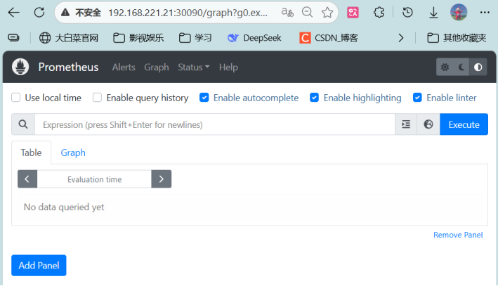 用192.168.221.21:30090访问Prometheus