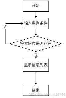 面对数据库里面大量数据,在系统的前台,要想快速获取需要的信息,就需要使用查询功能。其流程见下图。该功能需要操作者提前输入关键词,当系统的后台数据库保存了与关键词匹配的数据时,就会及时显示出来,整个过程耗时很短。