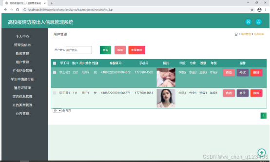 ssm250基于SSM的高校疫情防控出入信息管理系统的设计与实现+jsp