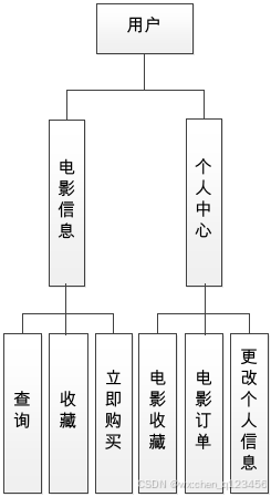图4.2即为设计的用户功能结构,用户权限操作的功能包括选择电影场次,选择观影座位,购买电影票,管理电影订单,收藏电影等。