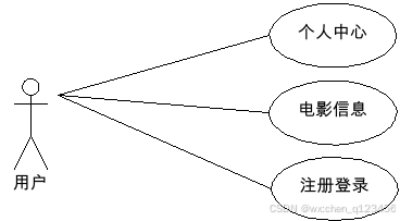 图3.6即为用户用例图,用户权限操作的功能包括选择电影场次,选择观影座位,购买电影票,管理电影订单,收藏电影等。