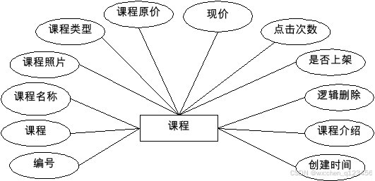 本系统使用轻量级的MySQL数据库,对系统相关的数据信息进行管理和维护[12]。数据库设计阶段一般可以被分为概念设计和逻辑设计这两个阶段。在进行数据库相关设计的全过程中,两个阶段所起到作用是完全不同的,概念设计是实现数据库设计的主要基础,逻辑设计阶段是完成数据库设计的最终目标。概念设计阶段以设计实体-联系图(E-R图)的方式,将现实世界中用户的相关需求抽象化为虚拟世界中的概念模型。本人通过设计E-R图,详细地对系统各实体以及其存在的联系进行了表达。各实体信息的实体属性图如图4-2、图4-3、图4-4、图4-5、图4-6、图4-7、图4-8、图4-9、图4-10、图4-11、图4-12、图4-13、图4-14、图4-15所示,系统总体E-R图如图4-16所示。