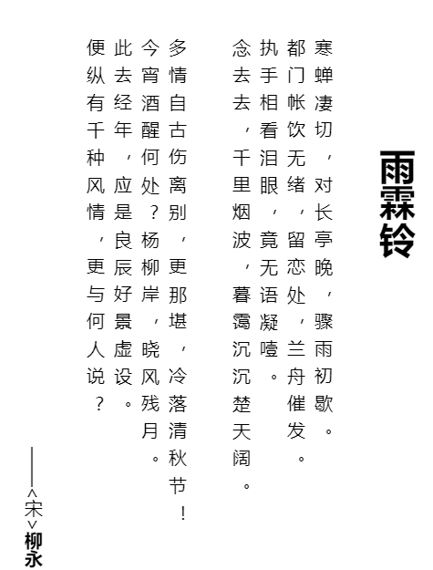 <p>寒蝉凄切,对长亭晚,骤雨初歇。<br>