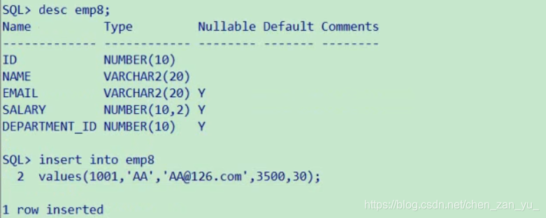 查看表结构+插入数据: