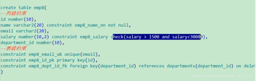 三,表级约束和列级约束