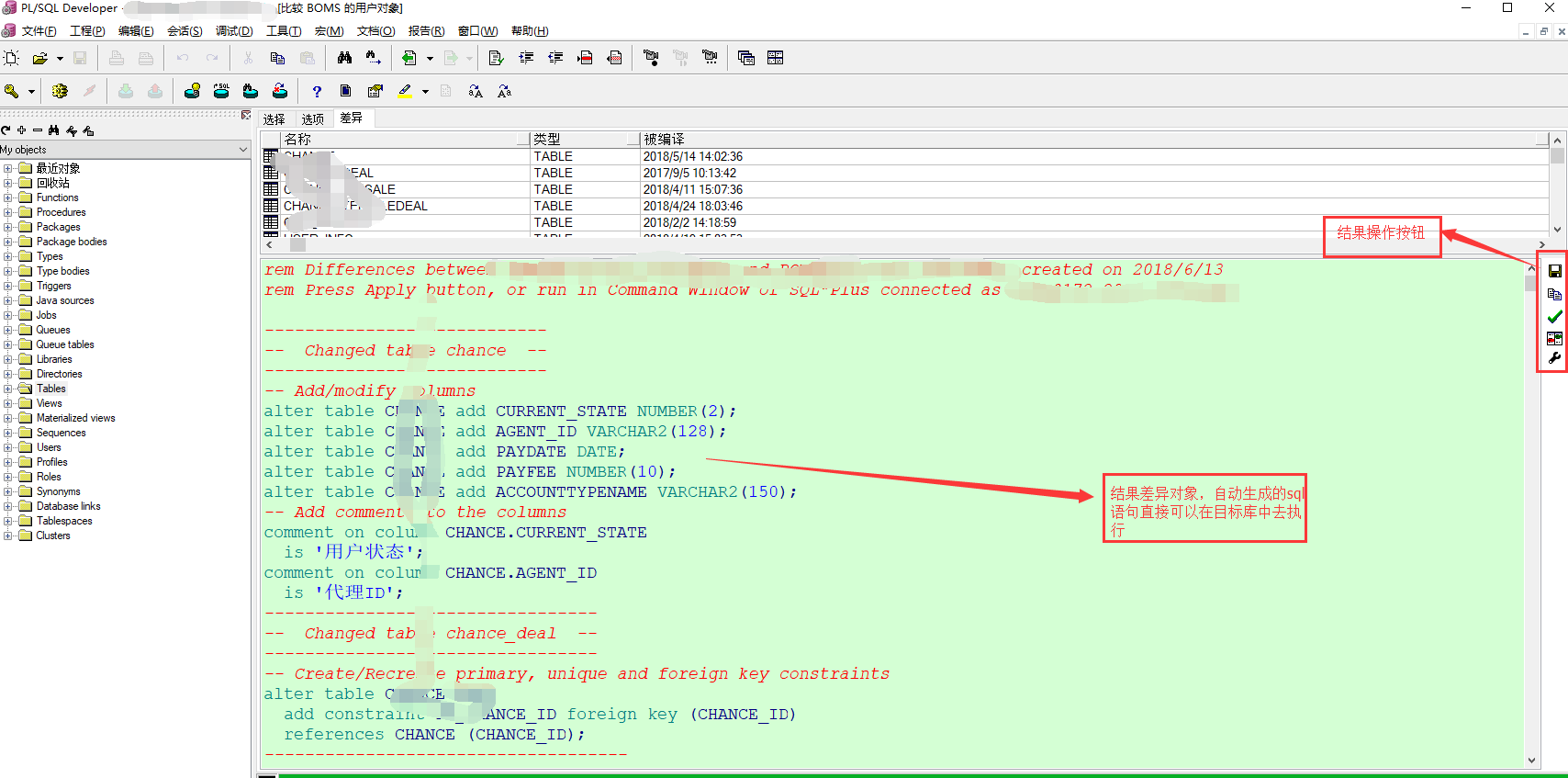 码农们都知道我们搞开发的环境基本上都有两个:一个是正式环境,另一个是开发环境。我们在开发过程中免不了因为我们的需求添加新的表,新增字段,视图,序列等等。按理说每增加一个表,字段和视图都应该完善开发文档的,便于后期的上线。由于那段时间比较忙就给耽搁了,后面有时间了要整理上线文档了就很痛苦。我想有没有什么工具可以直接比对两个环境的差异性,直接生成文档,那该多好啊。果不其然真有这样的工具,下面就简单介绍一下这个工具: