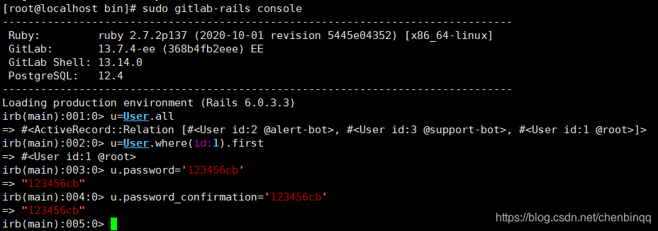 输入如下指令,设置的root用户的密码,如“123456cb”