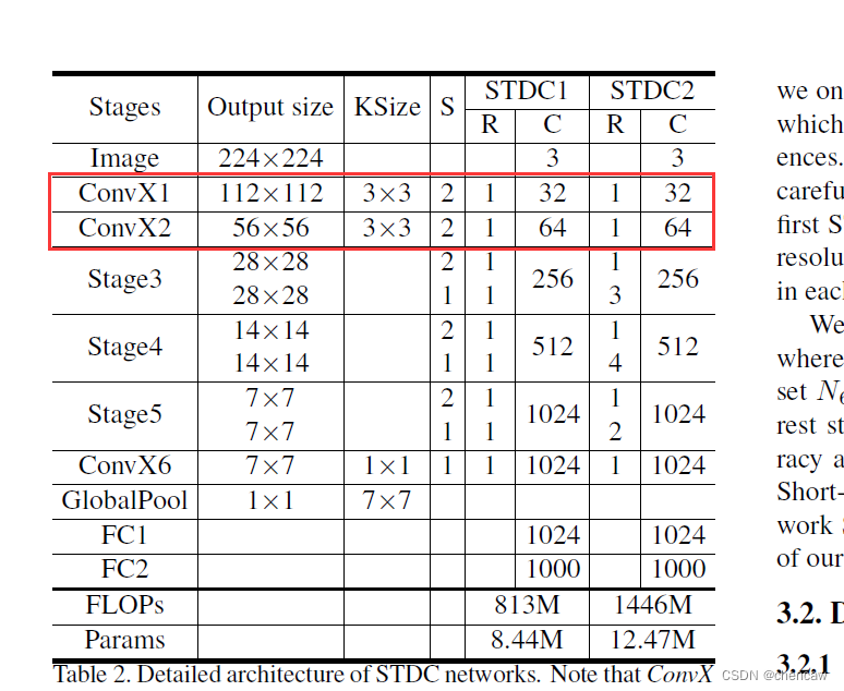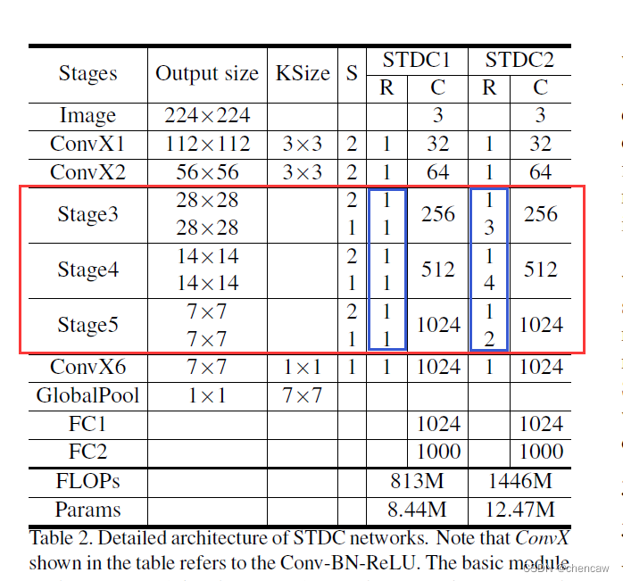 以上图为框架,作者构建了2个STDC网络,分别命名为STDC1和STDC2,它们的结构如下表所示: